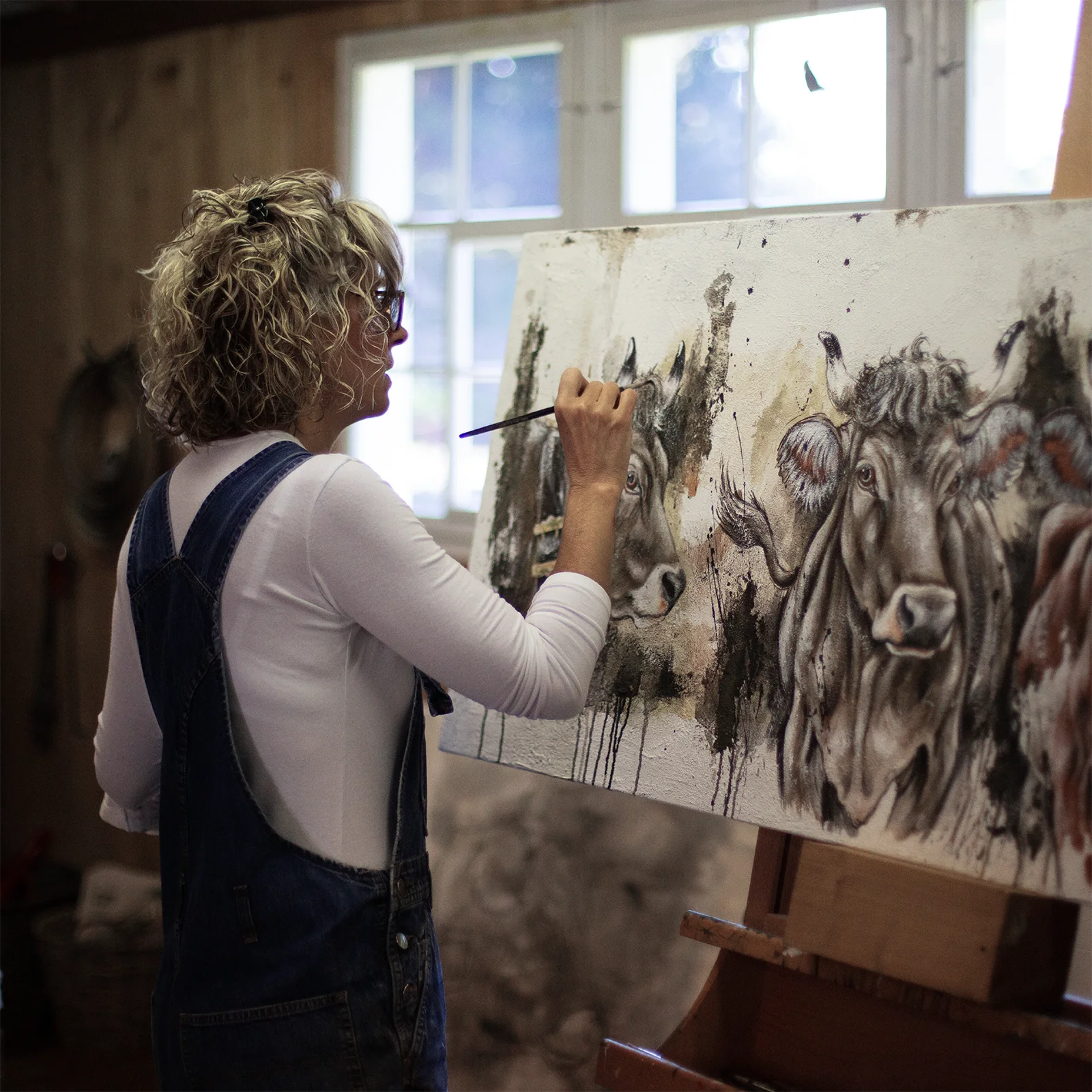 Ihre Kunst bildet eine Verbindung von Vergangenheit und Gegenwart – ein Brückenschlag zwischen traditioneller Motivik und zeitgenössischer Ausdruckskraft. Jedes Werk ist ein Zeugnis ihrer tiefen Verbundenheit mit dem ländlichen Leben und den Menschen, die es prägen. Sie möchte nicht nur Bilder schaffen, sondern Erlebnisse – Kunst, die den Betrachter berührt und ihn auf eine emotionale Reise mitnimmt.