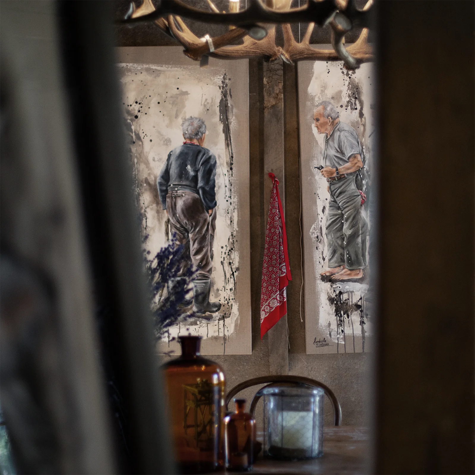 Für Carmela Inauen ist Kunst weit mehr als blosse Ästhetik – sie ist der Ausdruck von gelebter Geschichte und tief verwurzelten Emotionen. Ihr Schaffen ist geprägt von der Faszination für das bäuerliche Leben, die Natur und den Charakter der Menschen, die sie porträtiert. Besonders die Wahl ihrer Materialien spielt dabei eine zentrale Rolle: Die gebrauchten Jutesäcke mit ihren Nähten, Flecken und Stempeln erzählen ihre eigenen Geschichten, die sie malerisch weiterführt.